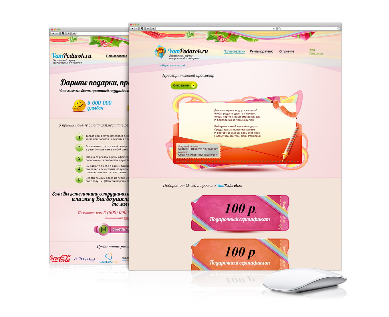 Разработка уникального проекта – сервиса бесплатных поздравлений и подарков «Вам подарок»